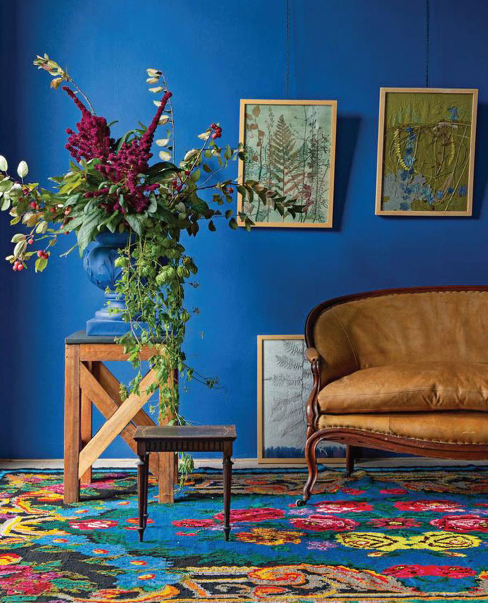 아티스트 프리다칼로의 'La Casa Azul'에 찬사를 담아 파란 공간으로 마무리된 응접실.