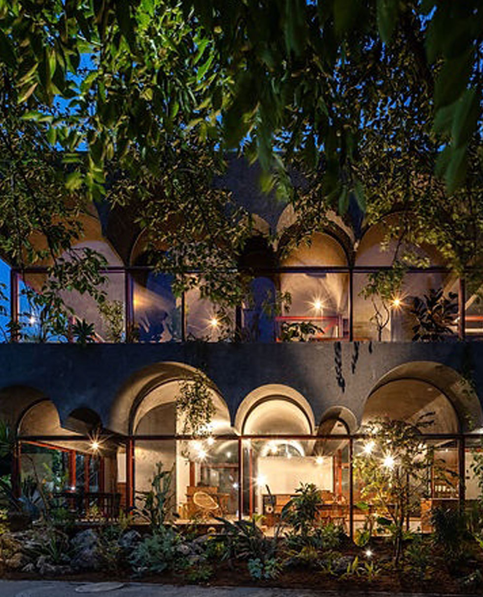 한쪽으로 경사진 지붕에는 천정창을 설치하여 오아시스와도 같이 가득 배치된 식물의 표정을 보다 더 돋보이게 한다. 많은 종류의 식물이 있지만 덩굴 식물은 행잉(hanging)하고 크게 잎을 펼치는 식물은 스툴 위에 놓아, 각각의 개성이 최대한 생생하게 보이도록 연출했다. |