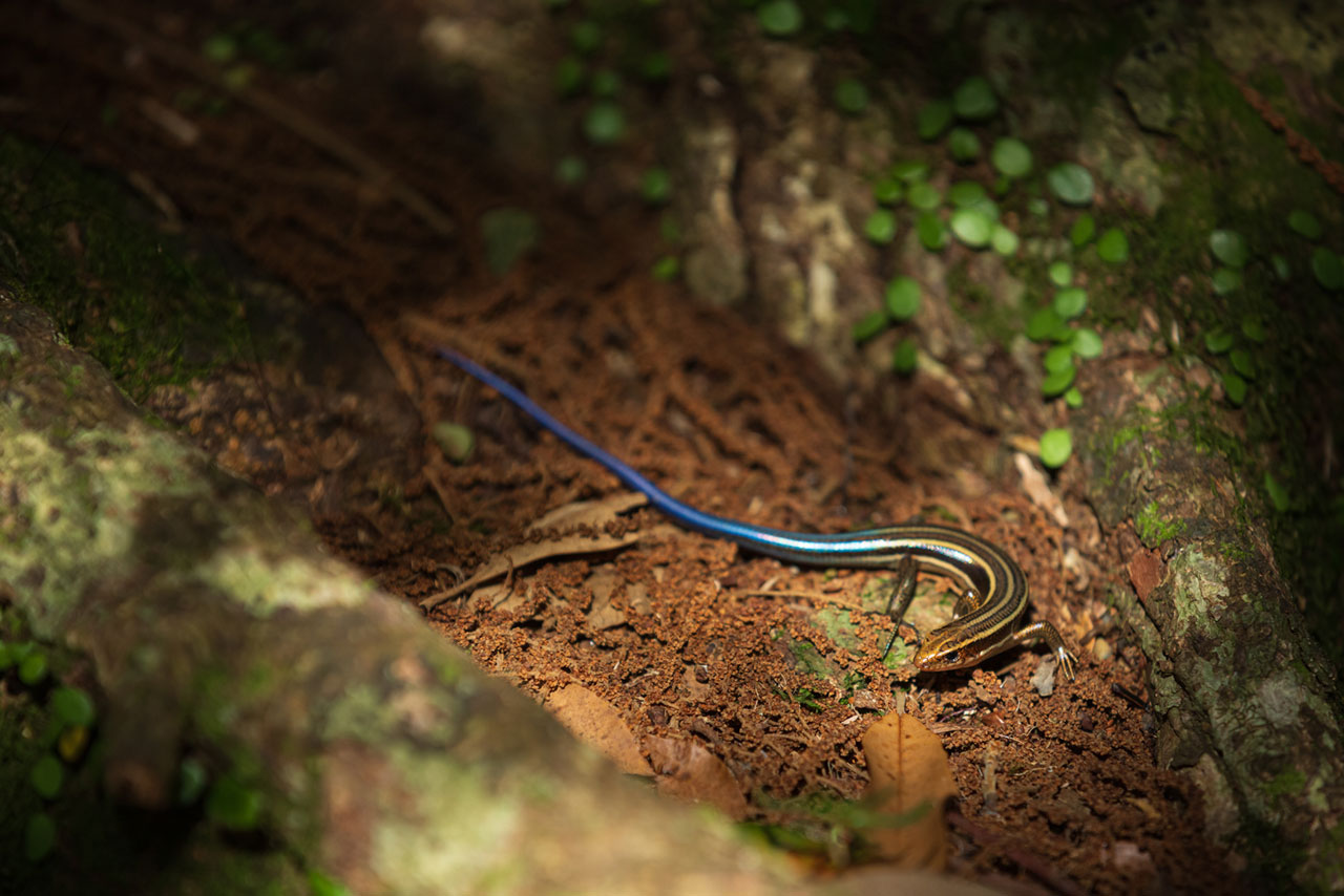 도마뱀의 몸 색과 비슷한 짙은 황록색